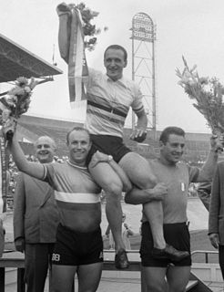 Valentino Gasparella is a retired Italian track cyclist. He won a gold medal in the team pursuit at the 1956 Summer Olympics in Melbourne. In the 1000 m sprint he won the world title in 1958 and 1959, and two bronze medals: at the 1957 World Championships and 1960 Summer Olympics.