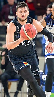 Alessandro Gentile is an Italian professional basketball player for Movistar Estudiantes of the Liga ACB. Standing at 2.01 m, he plays at the shooting guard and small forward positions. He was selected by the Minnesota Timberwolves with the 53rd overall pick in the 2014 NBA draft.