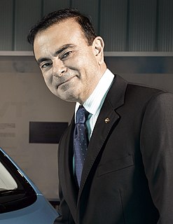 Carlos Ghosn is a Brazilian-born businessman. Ghosn also holds French and Lebanese nationality. As of January 2020, he is an internationally wanted fugitive. Ghosn has served as the CEO of Michelin North America, Chairman and CEO of Renault, chairman of AvtoVAZ, Chairman and CEO of Nissan, and Chairman of Mitsubishi Motors. Ghosn was also Chairman and CEO of the Renault–Nissan–Mitsubishi Alliance, a strategic partnership among those automotive manufacturers through a complex cross-shareholding agreement. The venture has held approximately 10% of the total market share since 2010, and as of 2017, was understood to be the largest automobile group worldwide.
