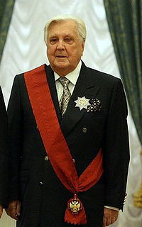 Ilya Glazunov was a Russian artist from Saint Petersburg. He was the founder of the Russian Academy of Painting, Sculpture and Architecture in Moscow where he also served as a rector up until his death. He held the title of People's Artist of Russia.
