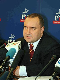 Przemysław Edgar Gosiewski was a Polish politician and a deputy chair of Law and Justice party. In the 1980s he was active in the Solidarity movement. In years 2006-2007 he served as a Deputy Prime Minister of Poland in Jarosław Kaczyński's government.