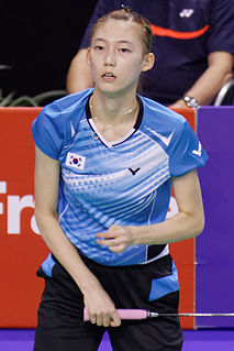 Kim Ha-na is a South Korean badminton player. She was the mixed doubles gold medalist at the 2013 Asian Championships, and was part of the national team that won the Sudirman Cup in 2017. Kim won her first Superseries title at the 2012 India Open in the women's doubles event. She reached a career high of world no. 1 in the mixed doubles in September 2016.
