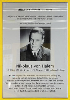 Nikolaus Christoph von Halem was a German lawyer, businessman, and resistance fighter against Nazism.