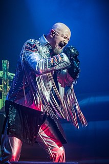 Robert John Arthur Halford is an English singer and songwriter. He is best known as the lead vocalist of the heavy metal band Judas Priest, which was formed in 1969 and has received accolades such as the 2010 Grammy Award for Best Metal Performance. He has been noted for his powerful, wide-ranging voice and trademark leather-and-studs image, both of which have become iconic in heavy metal. He has also been involved with several side projects, including Fight, Two, and Halford.