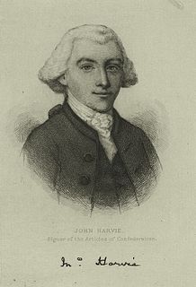 John Harvie was an American lawyer and builder from Virginia. He was a delegate to the Second Continental Congress in 1777 and 1778, where he signed the Articles of Confederation.