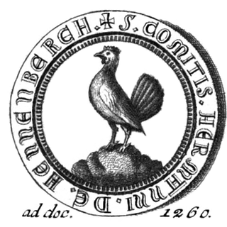 Catherine of Henneberg was a Countess of Henneberg by birth and from 1347 by marriage Margravine of Meissen, Landgravine of Thuringia, etc. She was the wife of Margrave Frederick the Severe of Meissen. Via her, the House of Wettin inherited her father's Franconian possessions.