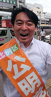 Daisaku Hiraki is a Japanese politician. He is a member of the House of Councillors since 2013, representing the Komeito party.