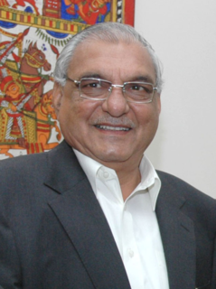 Bhupinder Singh Hooda is an Indian National Congress politician who is the current Leader of the Opposition in Haryana Legislative Assembly. He also served as the Chief Minister of Haryana from 2005 to 2014.