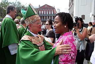 Alfred Clifton Hughes KC*HS is a retired American prelate of the Roman Catholic Church. He served as the 13th Archbishop of New Orleans, having previously served as Bishop of Baton Rouge from 1993 to 2002. On June 12, 2009, Pope Benedict XVI appointed Bishop Gregory M. Aymond as the new Archbishop of New Orleans to replace Archbishop Hughes.