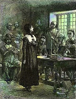 Anne Hutchinson was a Puritan spiritual advisor, religious reformer, and an important participant in the Antinomian Controversy which shook the infant Massachusetts Bay Colony from 1636 to 1638. Her strong religious convictions were at odds with the established Puritan clergy in the Boston area and her popularity and charisma helped create a theological schism that threatened to destroy the Puritans' religious community in New England. She was eventually tried and convicted, then banished from the colony with many of her supporters.