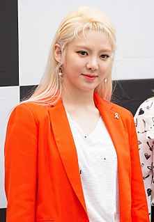 Kim Hyo-yeon, referred to as Hyoyeon or DJ HYO, is a South Korean singer, dancer, DJ, and television personality. She debuted as a member of the girl group Girls' Generation in August 2007, which went on to become one of the best-selling artists in South Korea and one of South Korea's most popular girl groups worldwide. Since 2016, she has also released singles as a solo artist.
