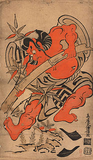 Ichikawa Danjūrō I was an early kabuki actor in Japan. He remains today one of the most famous of all kabuki actors and is considered one of the most influential. His many influences include the pioneering of the aragoto style of acting which came to be largely associated with Edo kabuki and with Danjūrō and his successors in the Ichikawa Danjūrō line.