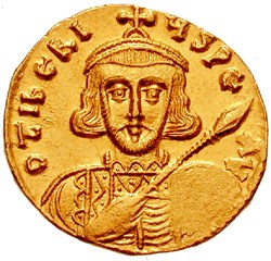 Tiberius III was Byzantine emperor from 15 February 698 to 10 July or 21 August 705 AD. Little is known about his early life, other than that he was droungarios, a mid-level commander, of the Cibyrrhaeots, and that his birth name was Apsimar. In 696, Tiberius was part of an army led by John the Patrician sent by Byzantine Emperor Leontios to retake the city of Carthage in the Exarchate of Africa, which had been captured by the Arab Umayyads. After seizing the city, this army was pushed back by Umayyad reinforcements and retreated to the island of Crete; some of the officers, fearing the wrath of Leontios, killed John and declared Tiberius emperor. Tiberius swiftly gathered a fleet, sailed for Constantinople, and deposed Leontios. Tiberius did not attempt to retake Byzantine Africa from the Umayyads, but campaigned against them along the eastern border with some success. In 705 former Emperor Justinian II, who had been deposed by Leontios, led an army of Slavs and Bulgars to Constantinople, and after entering the city secretly, deposed Tiberius. Tiberius fled to Bithynia, but was captured several months later and beheaded between August 705 and February 706. His body was initially thrown into the sea, but was later recovered and buried in a church on the island of Prote.