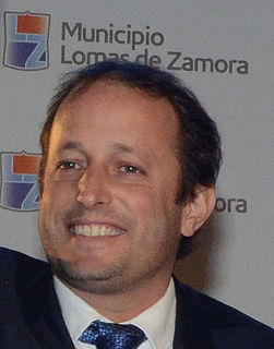 Martín Insaurralde is an Argentine politician of the Justicialist Party. He has been intendant of the partido (municipality) of Lomas de Zamora since 16 December 2014, and was previously between 28 October 2009 and 4 December 2013. Between 2013 and 2014, he was a member of the Argentine Chamber of Deputies.