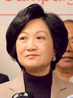 Regina Ip Lau Suk-yee is a Chinese politician. She is currently a member of the Executive Council (ExCo) and Legislative Council of Hong Kong (LegCo), as well as the founder and current chairperson of the New People's Party. She was formerly a prominent government official of the Hong Kong Special Administrative Region (HKSAR) and was the first woman to be appointed the Secretary for Security to head the disciplinary service. She is also the founder and Chairwoman of Savantas Policy Institute, a think-tank in Hong Kong.