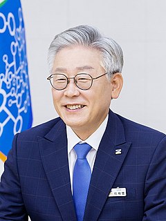 Lee Jae-myung is a South Korean politician and attorney who has been serving as Governor of Gyeonggi Province since 2018. Prior to this, he served as Mayor of Seongnam, the tenth largest city in South Korea, from 2010 to 2018, and as an unsuccessful candidate for National Assembly in 2008. He is a member of the liberal Democratic Party.
