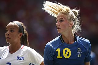 Eva Sofia Jakobsson is a Swedish footballer who plays for Real Madrid of the Spanish Primera División. She made her debut for the Sweden women's national football team in 2011 and won her 100th cap in 2019. Jakobsson represented her country in the 2013 edition of the UEFA Women's Championship, as well as at the 2011, 2015 and 2019 FIFA Women's World Cups. She also played at the 2012 and 2016 Olympic Football Tournaments.