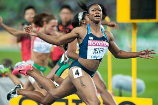 Carmelita Jeter is a retired American sprinter, who specialized in the 100 meters. She was the 2011 IAAF World Champion in the 100 m and a three-time Olympic medallist.