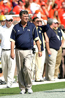 Paul Clayton Johnson is a retired American football coach. He served as the head football coach at Georgia Southern University from 1997 to 2001, the United States Naval Academy from 2002 to 2007, and Georgia Tech, from 2008 to 2018, compiling a career college football coaching record of 189–100. Johnson's Georgia Southern Eagles won consecutive NCAA Division I-AA Football Championships in 1999 and 2000. He is noted for his use of the flexbone spread option offense.