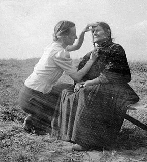Eva Justin was a German anthropologist who was active during the Nazi era. She specialised in scientific racism. Her work contributed to the Nazi crimes against the Sinti and Roma peoples.