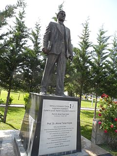 Ahmet Taner Kışlalı was a Turkish intellectual, political scientist, lawyer, commentator/author for the Cumhuriyet newspaper, academics and politician.