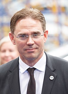 Jyrki Tapani Katainen is a Finnish politician who served as the European Commission's Vice-President for Jobs, Growth, Investment and Competitiveness from 2014 until 2019. Katainen was previously Prime Minister of Finland from 2011 to 2014 and chairman of the National Coalition Party from 2004 to 2014. He was succeeded by Alexander Stubb as chairman of Finland's National Coalition Party. After stepping down as Prime Minister, Katainen was elected as European Commission Vice-President in July 2014.
