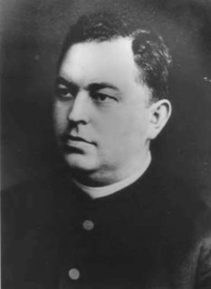 Father Bronisław Komorowski was a Polish Roman Catholic priest, active in the interwar period in the predominantly German Free City of Danzig. Komorowski, a Polish patriot and educator, was murdered by the Nazi occupiers at Stutthof concentration camp, together with a number of Polish activists captured during the Polish September Campaign. On 13 June 1999, Reverend Komorowski was among 108 Polish martyrs of World War II, beatified in Warsaw by Pope John Paul II.