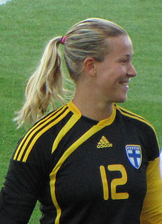 Tinja-Riikka Tellervo Korpela is a Finnish football goalkeeper who plays in the FA WSL for Everton. She previously played for Bayern Munich in the German Frauen-Bundesliga, Tyresö FF in Sweden's Damallsvenskan, LSK Kvinner and Kolbotn of Norway's Toppserien, and FC Honka of Finland's Naisten Liiga.