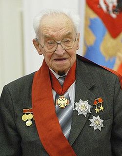 Vladimir Aleksandrovich Kotelnikov was an information theory and radar astronomy pioneer from the Soviet Union. He was elected a member of the Russian Academy of Science, in the Department of Technical Science in 1953. From 30 July 1973 to 25 March 1980 Kotelnikov served as Chairman of the RSFSR Supreme Council.