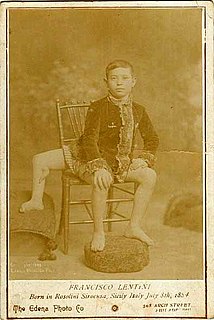 Francesco "Frank" Lentini was a Sicilian-American sideshow performer who toured with numerous circuses. Born with a parasitic twin, Lentini had three legs.