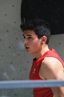 Alberto Ginés López is a Spanish professional rock climber, specializing in lead climbing and bouldering. He placed second in the 2019 Lead Climbing World Cup and won a silver medal at the 2019 Lead Climbing European Championship.