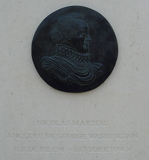 Nicolas Martiau (1591–1657) was a Frenchman who immigrated to the English colony of Virginia in the 17th century. Born in the western island of Île de Ré, he is an ancestor of the first American president, George Washington.