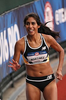 Brenda Martinez is an American track and field athlete, specializing in middle distance races. Born in Upland, California. She won a silver medal in the 800 meters at the IAAF World Championships in Moscow, 2013. She also represented the USA at the 2012 IAAF World Indoor Championships in the 1500 meters. On February 7, 2015 she set a world record in the Distance medley relay at New Balance Indoor Grand Prix. In 2015, started Big Bear Track Club and recruited their first athlete Boris Berian. In 2016, Martinez qualified for the U.S. Olympic team competing in the 1500 meters after beating Amanda Eccleston by 0.03 seconds.