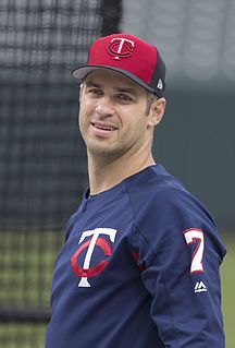 Joseph Patrick Mauer, is an American former professional baseball catcher, designated hitter, and first baseman, who spent his entire 15-year Major League Baseball (MLB) career with the Minnesota Twins. A six-time All Star, Mauer is the only catcher in MLB history to win three batting titles, and the only catcher to ever win a batting title in the American League (AL). He also won three consecutive Gold Glove Awards (2008–2010), five Silver Slugger Awards and the 2009 AL Most Valuable Player (MVP) Award. As of 2020, he is the most recent catcher to win the MVP award in the American League.