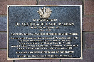 Archibald Lang McLean was an Australian bacteriologist known for his role as chief doctor on the Sir Douglas Mawson's Australasian Antarctic Expedition.