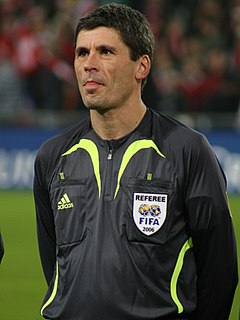 Markus Merk is a former top-level German football referee. He is a six-time winner of the German Referee of the Year Award and the record holder in games refereed in the Bundesliga. In 2005, Merk was awarded the German Bundesverdienstkreuz in recognition of his service to football and his charity work in India. He ended his career by refereeing the match between Bayern Munich and Hertha BSC Berlin on the last day of the 2007–08 Bundesliga season on 17 May 2008.