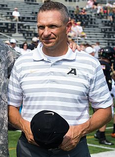 Jeffrey Michael Monken is an American football coach. He is currently the head football coach at the United States Military Academy, a position he has held since the 2014 season. Monken previously served as the head football coach of Georgia Southern University from 2010 to 2013. Prior to that, he worked under Paul Johnson as a running backs coach and special teams coordinator at Georgia Southern, the United States Naval Academy, and Georgia Tech.