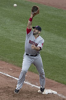 Mitchell Austin Moreland is an American professional baseball first baseman who is currently a free agent. He has played in Major League Baseball (MLB) for the Texas Rangers, Boston Red Sox and San Diego Padres. Moreland attended Mississippi State University and was drafted by the Rangers as a first baseman and outfielder in the 17th round of the 2007 MLB draft. Listed at 6 feet 2 inches (1.88 m) and 230 pounds (100 kg), Moreland both bats and throws left-handed.