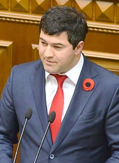 Roman Mykhailovych Nasirov is a Ukrainian politician who served as the Head of the State Fiscal Service of Ukraine. He was temporarily relieved of his duties on 3 March 2017 and although he was reinstated in his function by a court decision late 2018 he did not return as head of the State Fiscal Service.