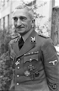Arthur Nebe (help·info) was a key functionary in the security and police apparatus of Nazi Germany and a Holocaust perpetrator.