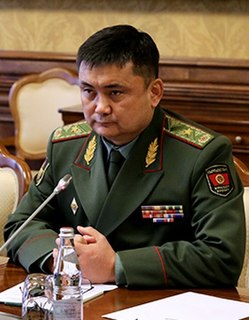 Taalaibek Baryktabasovich Omuraliev is a Kyrgyzstani General and the current Minister of Defense of Kyrgyzstan. He also served briefly as the Chief of the General Staff of the Armed Forces of the Kyrgyz Republic twice.