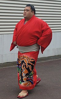 Ōnoshō Fumiya is a Japanese professional sumo wrestler from Aomori Prefecture. He debuted in sumo wrestling in January 2013 and made his top makuuchi debut in May 2017. His highest rank has been komusubi, and he has won three special prizes for Fighting Spirit, one for Outstanding Performance and two kinboshi for defeating yokozuna. He wrestles for Ōnomatsu stable.