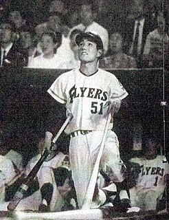 Katsuo Osugi was a Japanese professional baseball first baseman in Nippon Professional Baseball. He played for the Toei Flyers / Nittaku Home Flyers / Nippon Ham Fighters from 1965 to 1974 and the Yakult Swallows from 1975 to 1983. He was the Japan Series MVP in 1978 and was inducted into the Japanese Baseball Hall of Fame in 1997. Osugi's 486 career home runs places him ninth on the all-time NPB list.