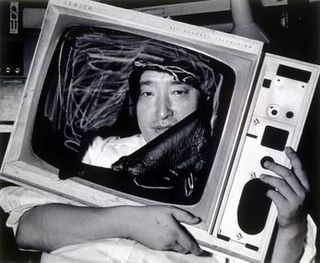 Nam June Paik was a Korean American artist. He worked with a variety of media and is considered to be the founder of video art. He is credited with the first use (1974) of the term "electronic super highway" to describe the future of telecommunications.
