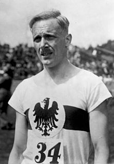 Otto Paul Eberhard Peltzer was a German middle distance runner who set world records in the 1920s. Over the 800 m Peltzer improved Ted Meredith's long-standing record by 0.3 seconds to 1:51.6 min in London in July 1926. Over the 1000 m he set a world record of 2:25.8 in Paris in July 1927, and over 1500 m Peltzer broke Paavo Nurmi's world record (3:52.6) and set a new one at 3:51.0 in Berlin in September 1926. Peltzer was the only athlete to have held the 800 m and the 1500 m world records simultaneously, until Sebastian Coe matched the feat over fifty years later.