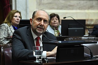 Omar Ángel Perotti is an Argentine accountant and Justicialist Party politician who has been Governor of Santa Fe since 2019. From 2015 to 2019 he was a National Senator, and from 2011 to 2015 he was a National Deputy, always representing the same province. He was also intendente (mayor) of Rafaela from 1991 to 1995 and again from 2003 to 2011.