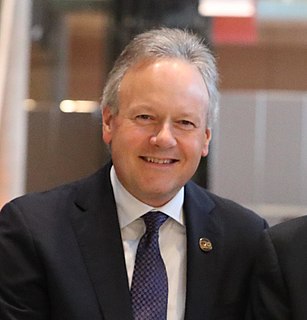 Stephen S. Poloz is a Canadian banker and was the ninth Governor of the Bank of Canada. He is also a member of the board of directors for the Bank for International Settlements.