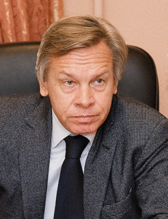 Aleksey Konstantinovich Pushkov is a Russian politician who has been Senator from Perm Krai since 29 September 2016. He is also a former Deputy of the State Duma and former head of the Foreign Affairs Committee in the State Duma, the lower house of the Russian Parliament. As a member of the United Russia political party in the federation council, he is the chairman of the Commission on Information Policy.