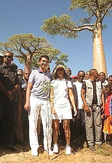 Andry Nirina Rajoelina is a Malagasy politician and businessman who is currently serving as the president of Madagascar. He started his career in the private sector, first organizing events on the Island, and then investing in the advertising business and the media. He was the Mayor of Antananarivo from December 2007 to February 2009, and President of the High Transitional Authority of Madagascar from 21 March 2009 to 25 January 2014, up until the general elections were held in 2013.