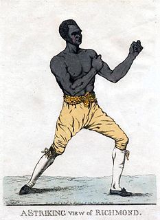 Bill Richmond was a British boxer, born a slave in Richmondtown, Staten Island, New York. Although born in British America, he lived for the majority of his life in England, where all his boxing contests took place. Richmond went to England in 1777, where he had his education paid for. He then apprenticed as a cabinetmaker in York.